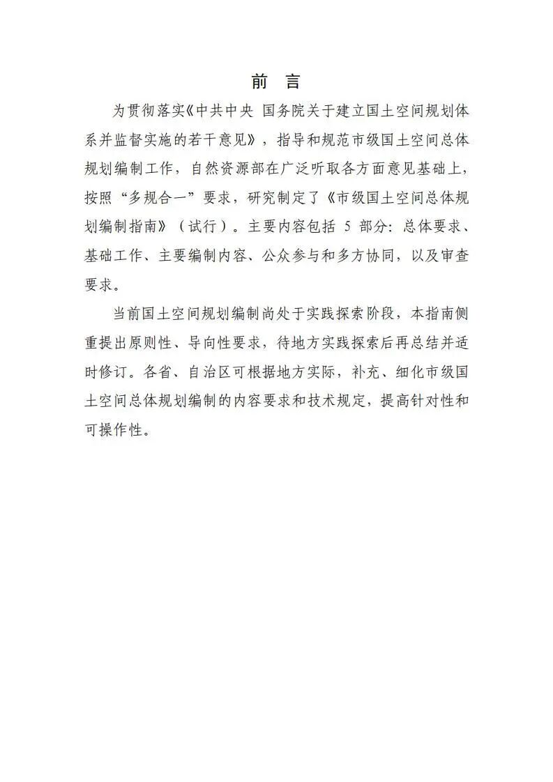 为贯彻落实《中共中央国务院关于建立国土空间规划体系并监督实施的若干意见》,国土空间规划局按照“多规合一”改革要求,研究起草了《市级国土空间总体规划编制指南(试行)》(征求意见稿),且