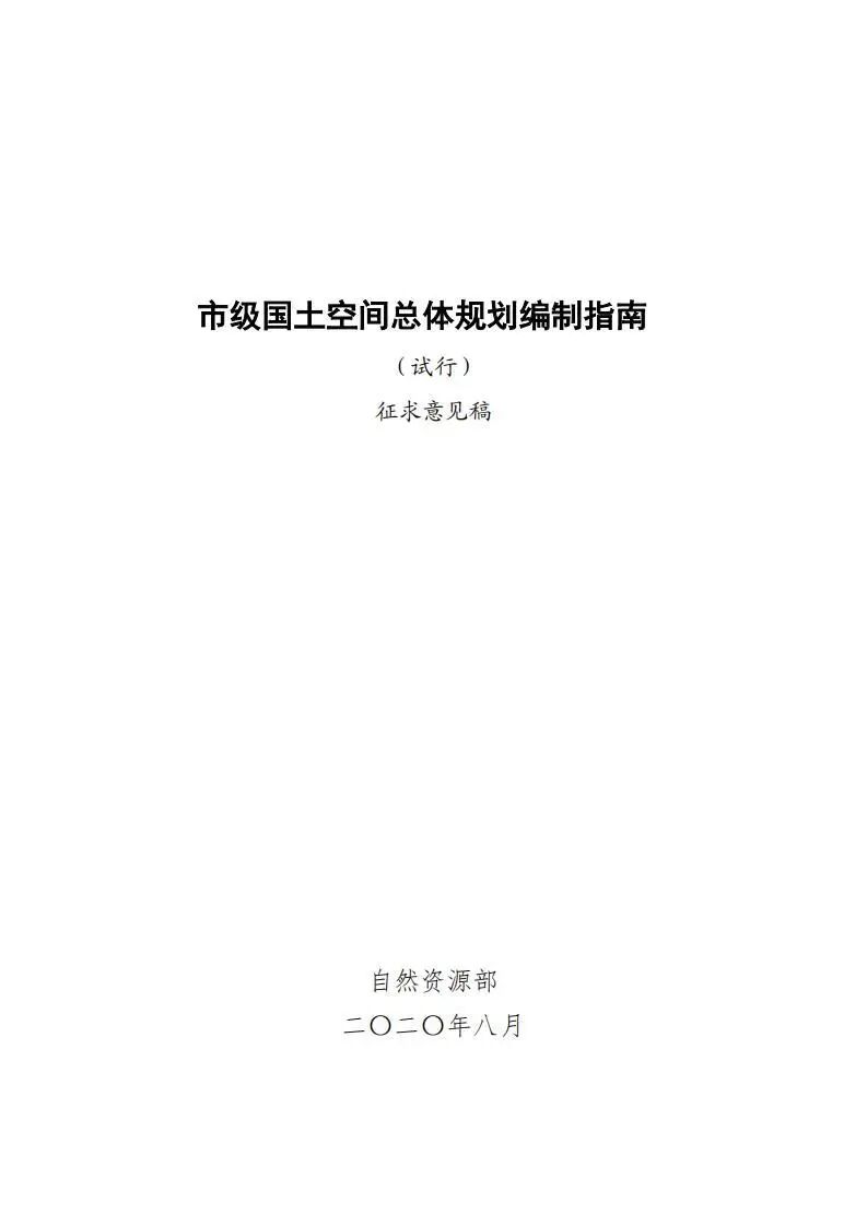 关于公开征求《市级国土空间总体规划编制指南(试行)》(征求意见稿)意见的通知